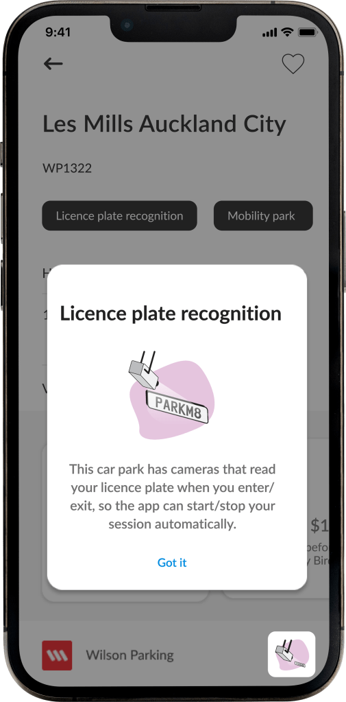 You can identify if a car park has LPR cameras available by looking for the black “Licence plate recognition” tag underneath the car park name, and by viewing the icons on the footer (bottom-right corner) of the car park screen, for open-air and barrier arm car parks.